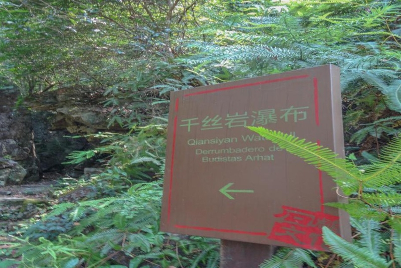 沿途走来发现草丛种一块千丝岩瀑布的路标立在草丛中,标明着千丝岩瀑布就在我们前面。