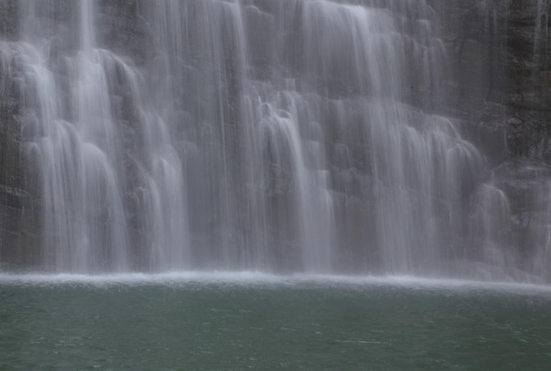 水流从高出飞流而下,撞击在山体岩石上形成千丝万缕,千丝瀑布也因此而得名。略微走近点还能感受到水流飞流而下,一些由撞击在岩石上溅出的小水滴,落在脸上凉凉的感觉。而千丝瀑布下面则是水流直下而形成的水潭,叫做千丝潭。