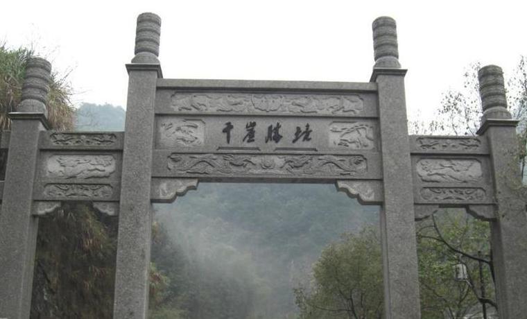 刚入景区,路中就竖立着一座高大的山门牌坊,上面写着“千崖胜境”四个大字,越过这座山门牌坊就感觉来到另一世界一般。