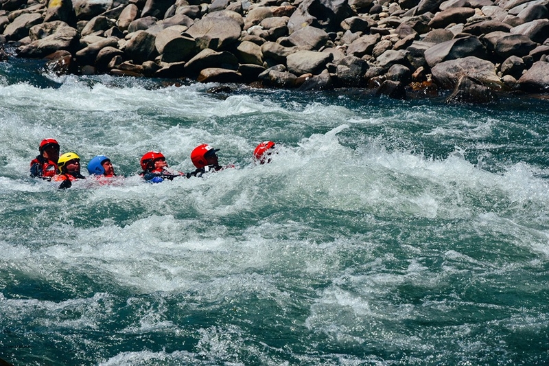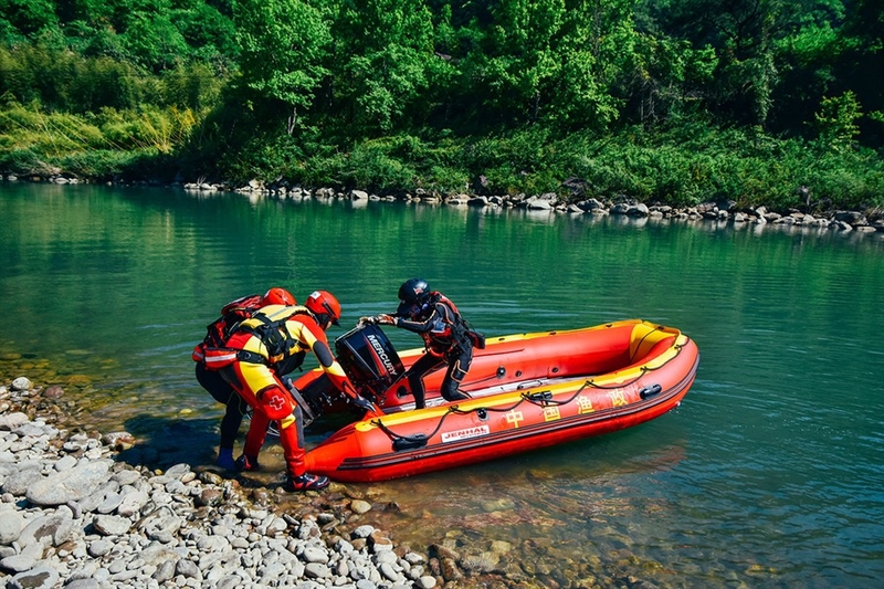 不远处看到一群救援人员正在进行急流救生培训,忍不住好奇心,也凑过去看看。