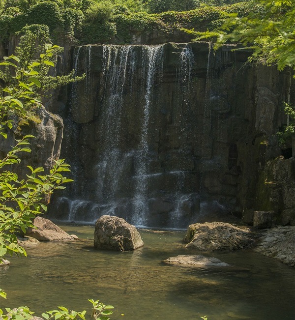 一进入景区就能看到一个小型瀑布,瀑布虽然小了点,但是气势还是不弱的。而那瀑布流下形成的水潭也是清澈见底。