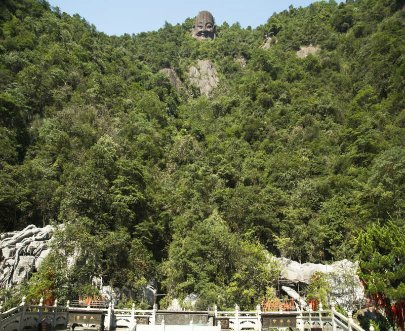 佛有三世佛,即过去、现在、未来等三世之众多诸佛。过去诸佛一般以燃灯佛为代表,释迦牟尼佛是现在佛,弥勒佛为未来佛。未来佛坐镇的寺院乃为未来寺。一尊三百米高的天然山体弥勒大佛端坐在清幽的峡谷中,弥勒大佛坐镇,“未来寺”因此得名。汤显祖在《牡丹亭》中描摹:“朝飞暮卷,云霞翠轩;雨丝风片,烟波画船。”正是现在未来寺所在地的风光。后人因循和依托有着悠久历史的千佛山和深厚佛教渊源的贯休文化,于未来寺规章矩制天下第一“佛”、“法”、“经”。“佛”就是天然弥勒佛。