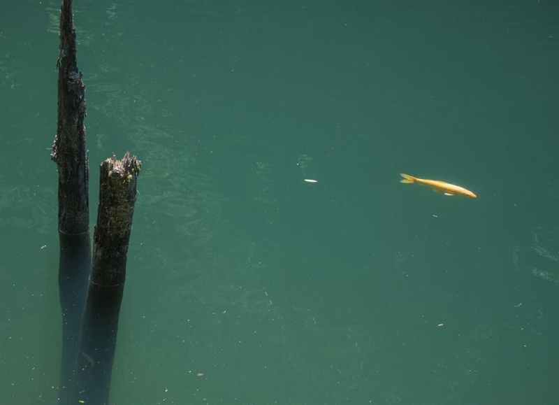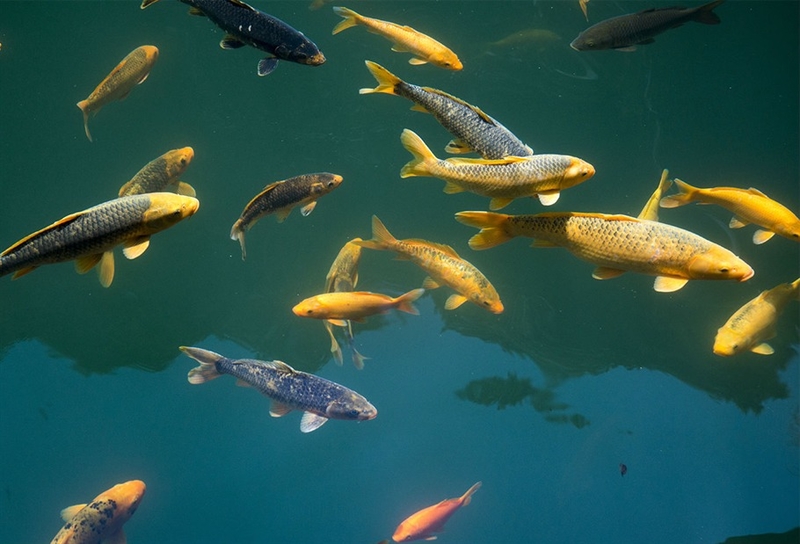 鲤鱼在湖水间穿梭,不仔细看,还以为在空气中游动呢,可见湖水的清澈程度了。不远处就有卖饲料的,可以买一包撒向湖里,鲤鱼就簇拥而来争相夺食。