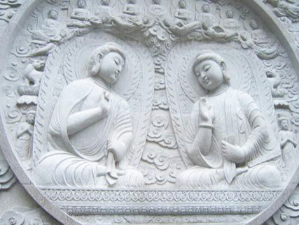 这便是延恩殿下的浮雕,两佛相望,慈眉善目。