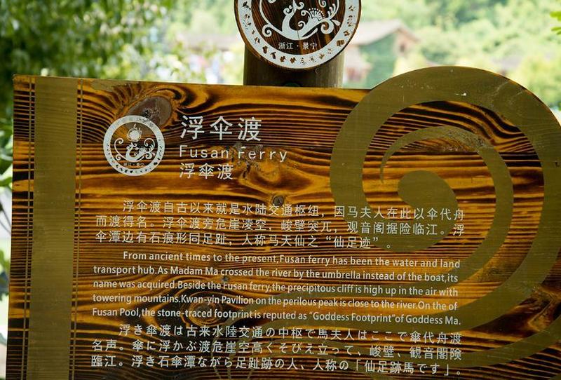 走出古街看到的就是浮伞渡,相传,唐朝的时候,有一马氏夫人,去景宁取羹汤奉侍母亲,经过大均,当时洪水滔滔,无法摆渡,马氏用大纸伞浮水而渡,村人神之,引为佳话。