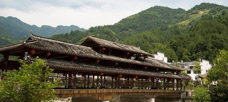 这是浮伞渡旁的均川桥,有着三层屋檐的廊桥。
