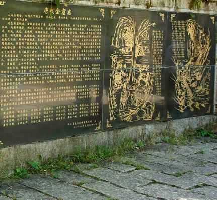 璧山记载着唐代金窟志,还有工人们开采矿石,河边洗金,冶炼的过程。沿着这个壁画走就能看到前面的唐代金矿入口遗址了。