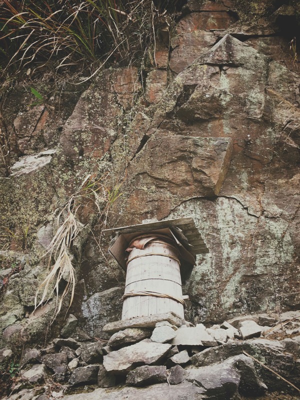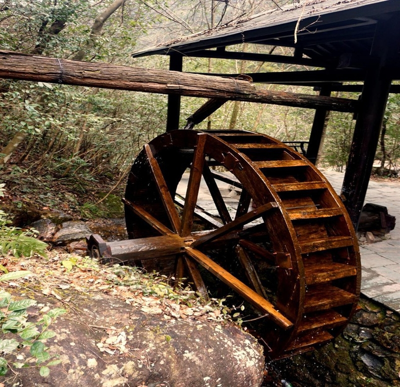 又一处休息的亭子,不过旁边有一个小水车,如今还在使用着,一些小村庄内或许残留一些,城市内就没看到过了,却没想到在这里能见到一座。而放水的管子竟然是用掏空了的树木做成的。