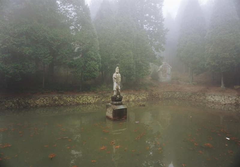 这就是景区的顶端,钱塘江的源头。走近就能看到一座方正的池塘。塘中立着一座观音雕像,慈祥的笑着,手中拿着一个倒过来净瓶,仿佛池内的水就是从瓶中流出一样。