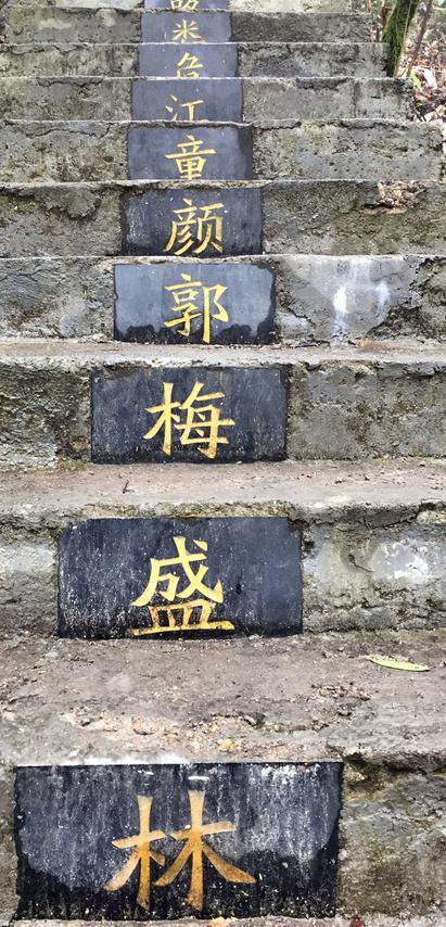 有这么一段台阶,每一层台阶前有一个字,这就是非常著名的百姓云梯了。可以在云梯中寻找一下自己的姓氏,一边爬一边寻找,当找到自己的姓氏那一瞬间的激动,还是非常的有趣的,最后还可以和自己的姓氏拍照留念。