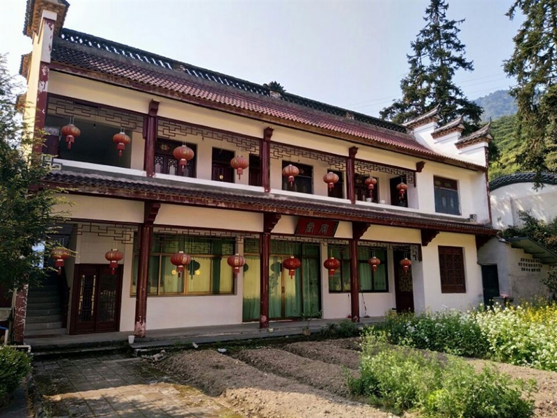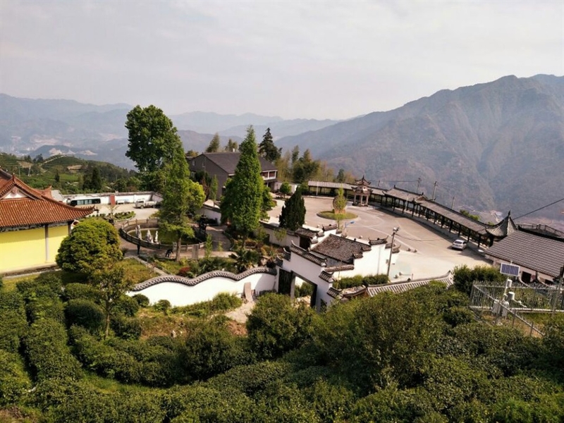 惠明寺背靠成片的茶园,虽是梅雨季节。但你依稀可见的便是一个个茶园里忙活的身影,戴着斗笠背着背篓忙着采茶的茶农。惠明寺的门大开着,站在寺院门前,我仿佛能听到那悠扬的钟声在山谷里回响,不知何时便醉了心神,庙里香火缭绕,有几名方士拿着扫帚清理着庭院里的灰尘。对来访者皆礼貌的作揖,露出和蔼的笑容。寺庙,禅道,仿佛是一场修行。总能洗濯掉我身上的几缕浮躁。心,慢慢的静下来,所有的不安和焦躁在此刻都渐渐的变得很平淡。