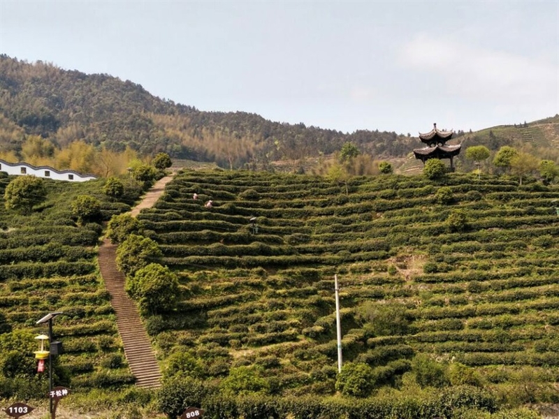 从一条石径小路下寻,旁侧便是成片的茶园,人间4月,正是采茶的好时节,茶园里的新苗也抽枝的特快,仿佛是受到了春天的召唤,来赴约一般。这条路很长,我走了很久,扶着旁侧的石栏杆,不禁腿有点发酸。许是常年不运动的缘故。