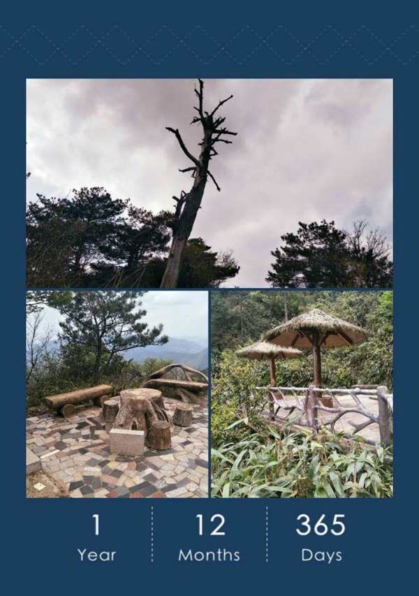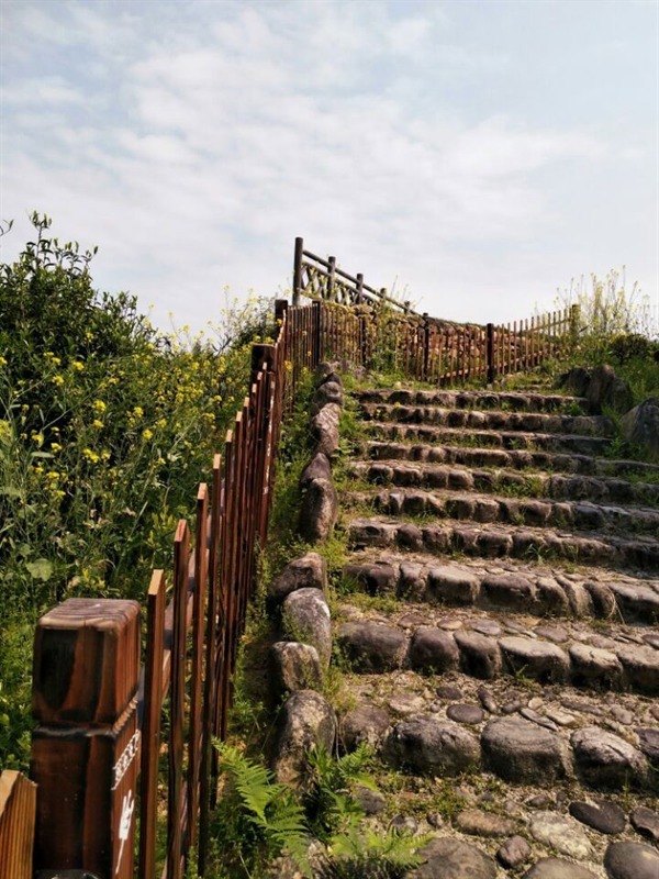 还有那蓝色的天,映着白色的云,便如同一副唯美的天地画卷一般,山,树,花又给它增添了几分颜色,格外的美丽。向下俯瞰,那些村子皆变的极其渺小,感觉所有的景色都能一览无余。众生皆在脚下。沿路上ni总能见到一个个极富有艺术的垃圾桶。它的外形就像一个个老木桩,如果你不仔细看,你还真看不出来。它融于此处,毫无违和感。