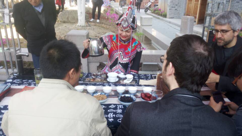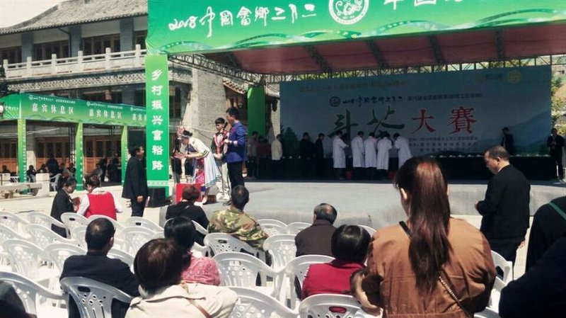 你所能感觉到的就是随处可见的人,随着人流往前走,便到了斗茶大会,这一天集中了全县的茶叶公司在这里,皆在道路两盘设立起摊子摆上自家的茶叶,供游人品尝。并通过游客的选票最终选出获奖的企业。看着时间,马上要到9点半了,畲族民俗展示活动的开幕式就要开始了。