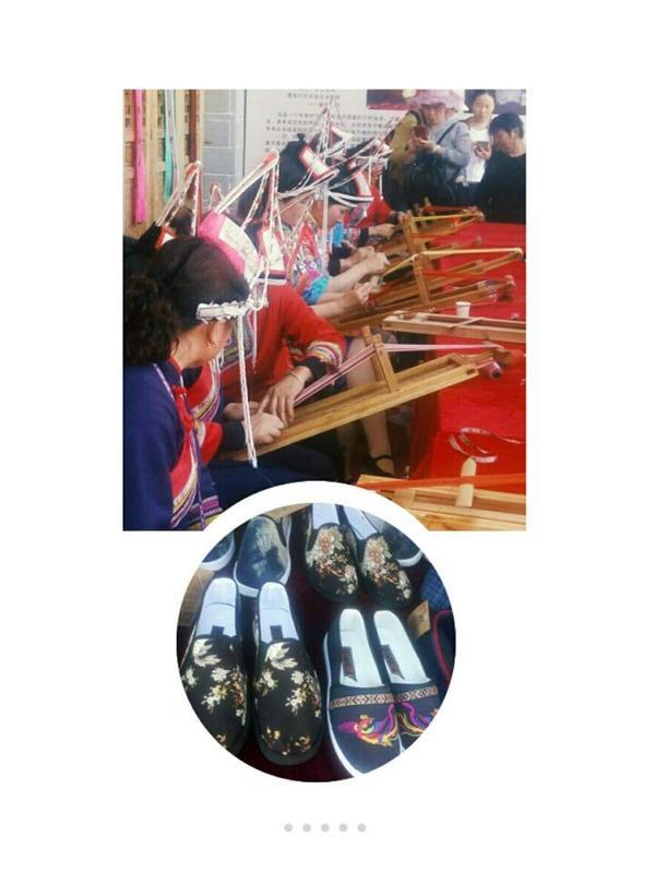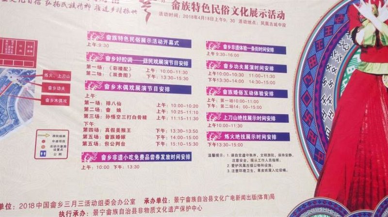 我又从复兴西路赶往了凤凰古镇,在戏台哪里依旧精彩的菇民戏表演,舞台旁边是一群畲家姑娘在哪里现场做腰带,也围了一圈人。在往前,沿路上便是各种畲族的手工艺品,咸菜,乌米饭,茶叶等等特产。