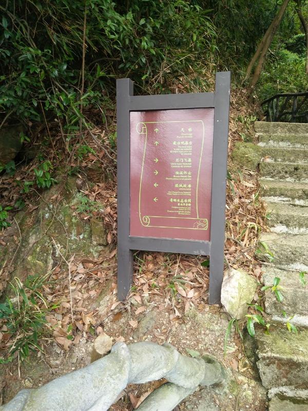 园中有一个竹编织摇椅,惬意时分,仿佛可以想象到当年陈诚坐在摇椅上看书乘凉的样子!路上有指向标,大致指引了我们这次要去的方向,有天桥,最佳观瀑台,石门飞瀑,伯温怀古,青田生态乐园等。