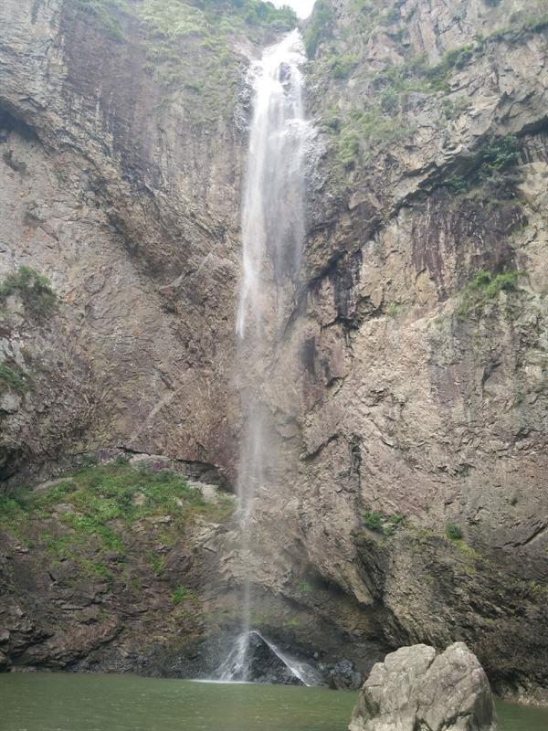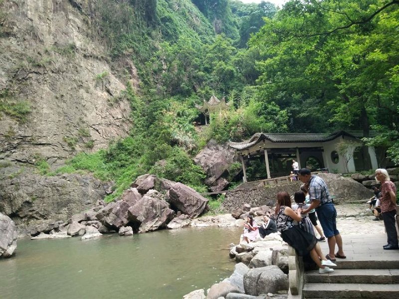 离开故居便去了石门洞,刚开始很好奇为什么叫石门洞呢?去了一看果然,因为隔岸望去,两岸山峰耸立,中间只留一峡谷,远看似洞,所以取名石门洞。根据门口的石门飞瀑景区导览图我们制定自己的游览路线,景区真是人性化,一共推荐了六条路线可供参考!这里虽然没有北方山河的壮丽粗狂,但是那烟雨朦胧的美景,别有一番韵味!湖光山色,指点江山,不得不赞美大自然的天功造化! 景区最出名的就是那令人叹为观止的数级特色各异的飞瀑,最下一级从1125米悬崖倾泻而下,形若垂练,溅如跳珠,散似银雾。整个景区是由洞天飞瀑、太子胜景、陈诚故居、伯温怀古四个景区组成,集山林苍翠之优、文物荟萃之胜、飞瀑壮观之美、气候宜人之适,是一处具有清、幽、灵、古、奇、险、野、趣之特色的“洞天仙境”。代李谦笔下的“高可眺,清可濯,邃可隐,幽可适,芳可采,奇可咏”完全就是石门风光的真实写照。有“世外桃源石门洞、神机妙算刘伯温”之誉。美景的背会也有很多历史故事上演,神机妙算的刘伯温便曾在这里进修求学!景区内大多可见各种小树,枝干挺拔,