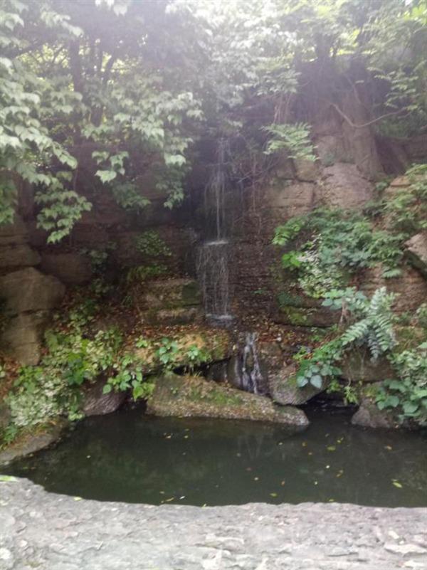 忽闻水声清越不绝,循声望去,方才恍然,有一瀑布正从山上飞下。此一幕,岂非郦道元曾说过的:“绝巘多生怪柏,悬泉瀑布,飞漱其间。清荣峻茂,良多趣味。”正此一水,为潭之活水。这瀑布过石,摔出串串如珠般水滴,迅疾的向下落去。霎时,水面叮叮咚咚,便收取无数山的馈赠。