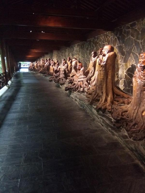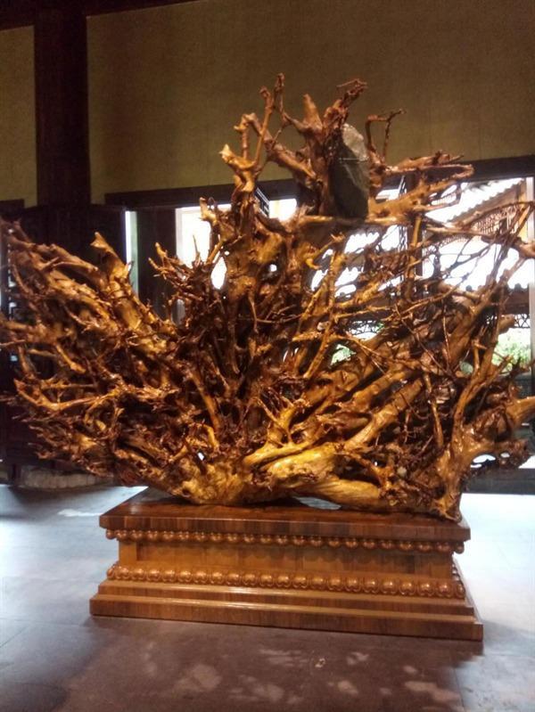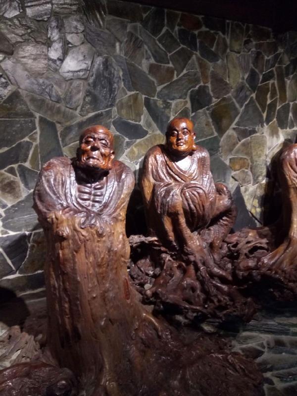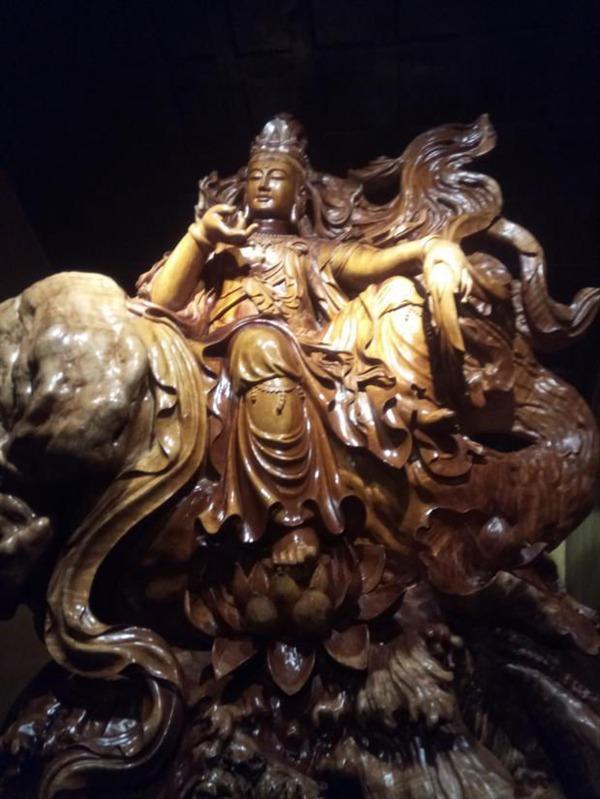 过其门,便见一厅,厅中陈列数座木雕,环绕中心几十平米的空余。所有木雕依木之行而雕世间之物,已有天地灵气孕育而生,有精益求精的大师所雕,成品自然不俗。便是于此一望,也感到蕴藏在其中的强大生命力。当我走出门,还感到她或是他,正悠悠的看着我。或有不暇顾人者,于位小憩。记得有一座木雕,以树根之状,被雕成千万枝丫错杂肆意的一株树木。看那枝丫,有纤细如丝,有张如人形,整体为一宝珊瑚树样。其形态繁复多样,令人叹为观止。