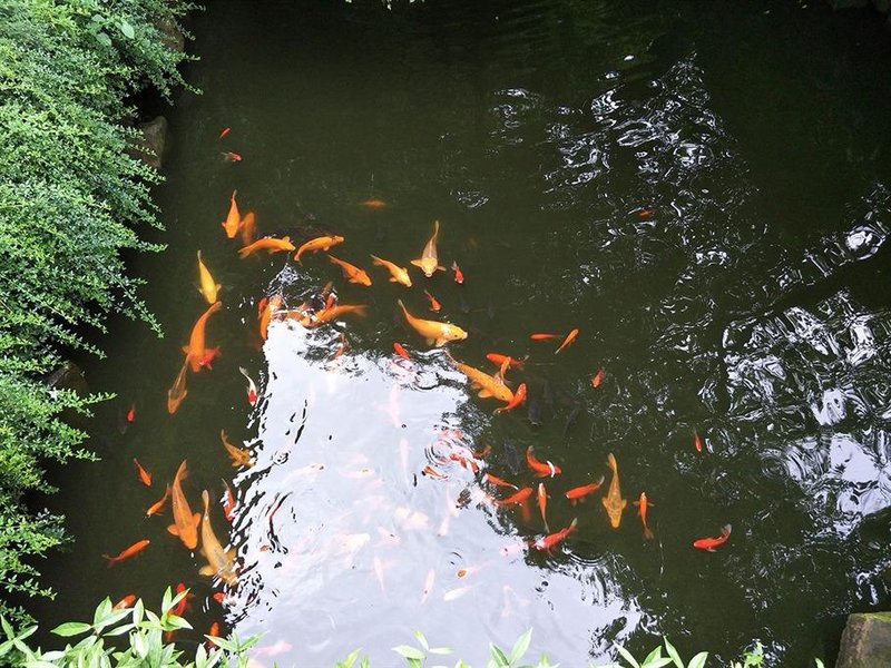 当坐在草地上时,几缕阳光倾泻,洒在草地上,微风温柔轻抚,枯黄的柳丝不断地摇曳着。与朋友们在这个静好的时光里,享受着明媚的夏日阳光。园内不知名花儿“肆意”的绽放,花儿香薰四溢弥散,洒满了我周边,我放佛又置身在花的世界中,沉醉于花的芬芳中。走在这青山绿水之间,整个人也不由的放松了下来,偶尔听听鸟鸣,抬头看看那湛蓝的天空,虽然抵不过西藏的美,但却也有开化的一份独特的韵味。根博园依山而建,想不到山间还能有这样一池清水。小桥流水庭廊,假山石凳树木,自然画卷最美的元素尽在画中显现。