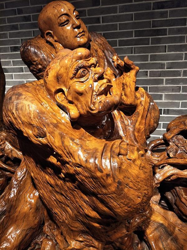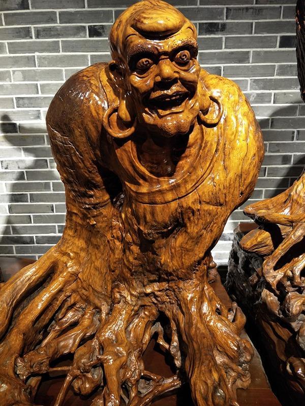 这些写意形式的根雕都无不让人钦佩于雕刻艺术家们的创造性。完全没有想到根雕能够如此的摄人心魂。这不是一场旅游,更是一场彻彻底底的视觉盛宴,让人一直在赞叹声中忍俊不禁啊!