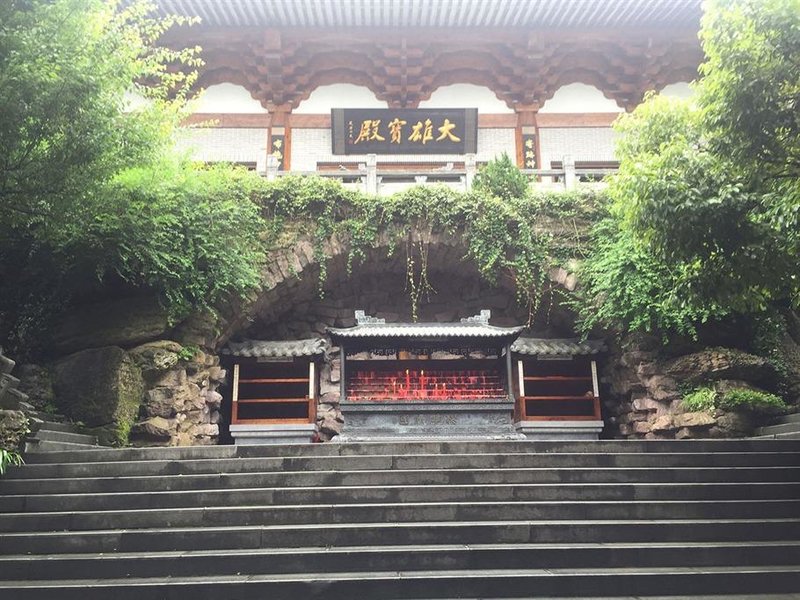 大雄宝殿,园内最大的释迦摩尼佛就在里面,出来后发现殿上匾额是没有字的!据说是徐大师在等待有缘人的出现。