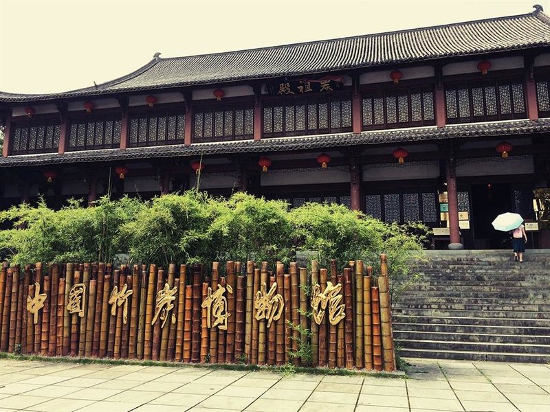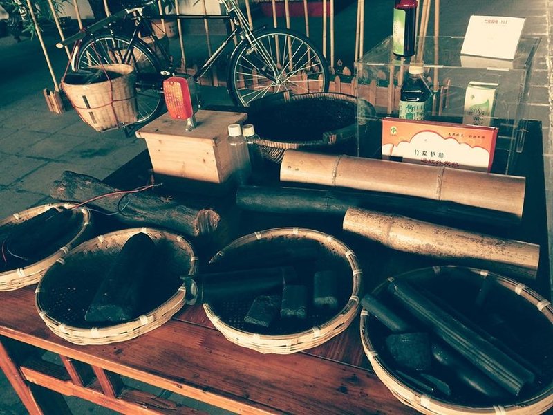 几棵松柏围着炭祖殿,衬托着它的庄严大气。门口肃立着由整齐划一的竹子组成的厚重的竹墙,上面撰写着中国竹炭博物馆,苍劲有力。顺着青砖而上,便是售票处,花上30元便可以欣赏这种古老的文化。