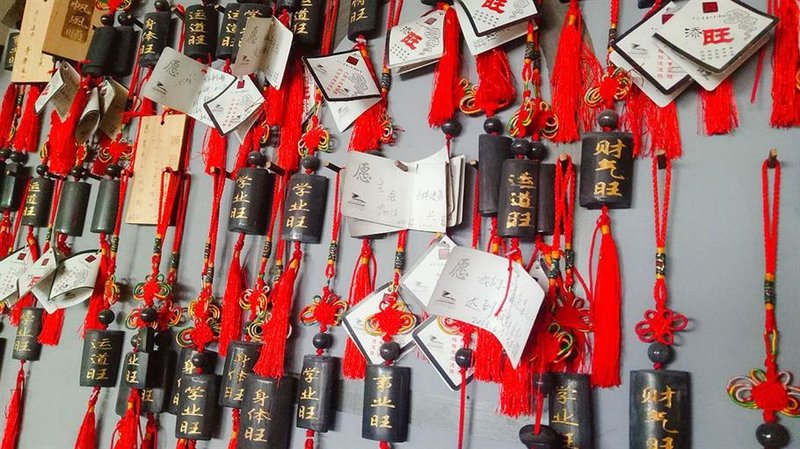 殿内供奉着陈老相公,一位将烧炭文化传播出去的始祖。边上陈列着各种炭盆,炭炉。竹炭文明历史悠久,底蕴丰厚。大厅内陈列着类别不同的竹炭,让我们感受它的外观之美。殿两侧有着遂心塔,层层叠叠的挂满了游人对自己或家人的期望。