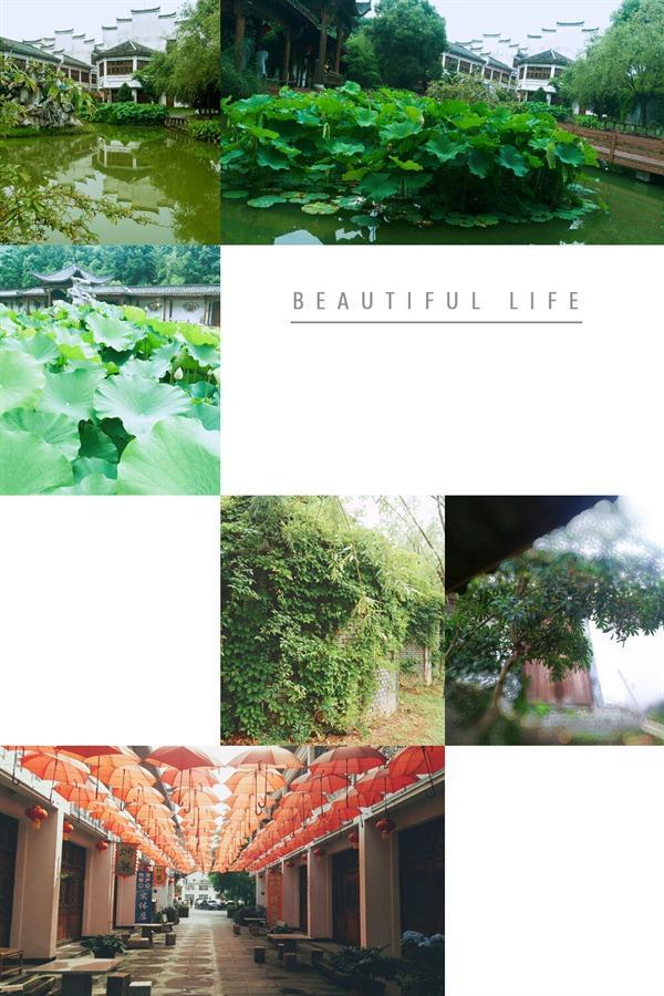 当我驻足在这充满魅力的街道上,忙不知所措的四处张望时,我的视线被一簇绣球花吸引住了。主人家明显很细心的照顾着它,参差不齐的竹子被富有想象力的排列着,我很佩服这主人家竟然能够想到用竹子替代普通的花盆,不用经过刻意的扦插组合就能够给人一种高低错落,富有层次的感觉。绣球花开的很茂盛,但是颜色又十分的低调,白色和淡蓝色总能让人觉得典雅朴素,回味十足。几朵黄色的小花俏皮的开在绣花球下,像是依偎在后者的怀里,让我不免的想起儿时的自己总是喜欢把身子倚靠在奶奶的怀中,温馨且快乐。我想住在这里的这家主人,也一定是一个善良的,喜欢微笑的人吧。一棵杨梅树羞答答的躲在屋顶后面,若不是吃货的眼睛,我或许不会发现它。零星的坠着几棵红的青的杨梅果,扑鼻而来的便是那酸酸的味道,不由的咽了下口水。池里的荷叶在风中摇曳着,水中倒映着空中几朵洁白的云朵,花骨朵含羞待放,洒下的金黄的阳光为她增添了一份纯洁的风情。这池塘的边上,有着一座形状独特的房子,边上的柳树条在风中飞扬,阴影遮住了门前的凳子,增添一份清凉气氛。坐在凳子上,捧着一杯香茗,看着门前姹紫嫣红的玫瑰,怡然自得。