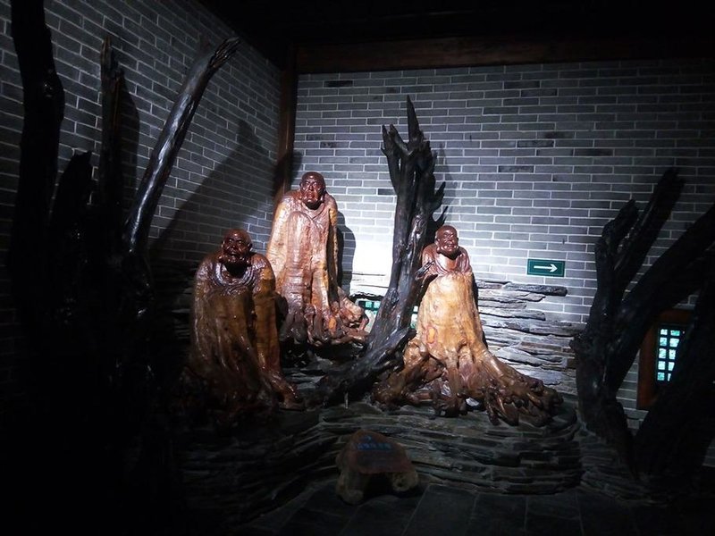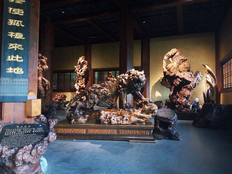 醉根天工博物馆是国内的第一家根雕专业博物馆,刚刚进入便被造型独特的根雕艺术作品所吸引,灵山护法自有一番威风凛凛,看起来凶猛却给人满满的安全感,双林涅槃显得庄严肃穆......我们在这里大概参观了20多件巧夺天工的根雕艺术作品,每一件都蕴含了深意,博物馆的二层是一些根雕研究文献,虽然不懂其中的门道,但是这偌大的树根埋在地下几百年,几千年才能长成这样大型,又是多么精湛的技术,能将多大的树根雕刻成供人参观,并且流传至今的根雕艺术作品,古人的智慧岂是我们三言两句就能揣摩的出来?不过是眼前的此情此景,令人感叹罢了。
