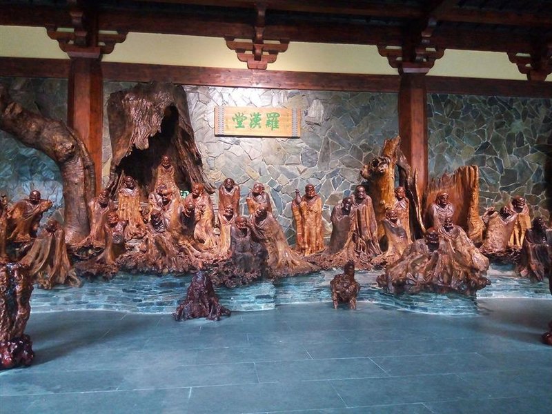 先前的景观说了这么多,不过都是根宫佛国的一隅,而接下来我们便走进了真正的根宫佛国,根宫佛国是三座大殿,旁边都是依山而建的文化长廊,之前在攻略中看到的大雄宝殿,罗汉堂等等都在其中,而之所以能被称为根宫佛国,便是因为这其中陈列的所有佛教文化人物均是由巨型的根雕制作而成,未来活佛开怀大笑,看到他仿佛心中的烦恼一扫而空,济公活佛摇晃着他的酒葫芦......最令人惊叹的便是500罗汉了,每一个罗汉面部表情都十分清晰,或坐或卧或站,人生百态应有尽有,却不乏佛的神秘,这500罗汉造型延绵600多米长,我们置身其中走了一圈,数了一圈,不禁拍手叫绝。