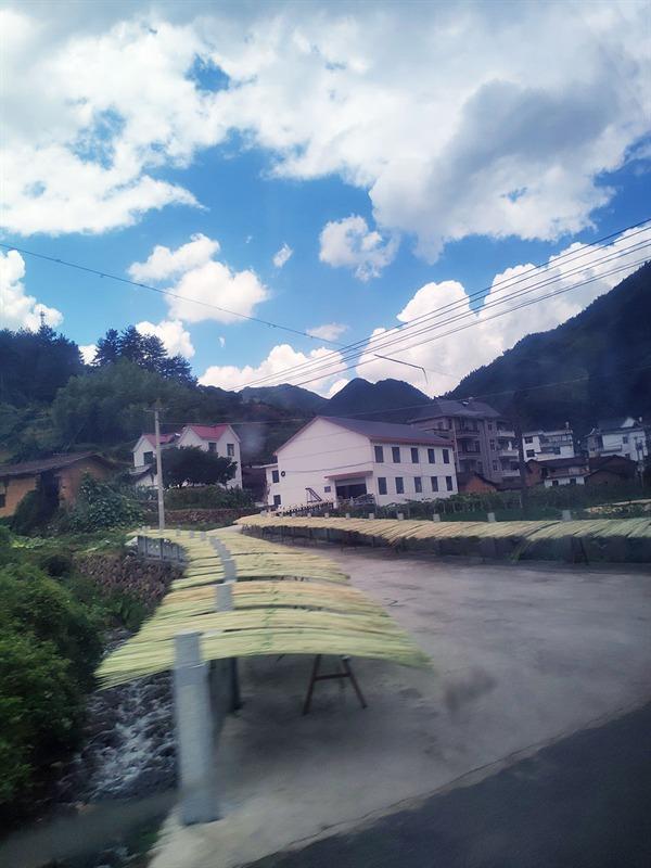 在大巴上的时间非常漫长,一路经过许多村镇,蜿蜒曲折的山路,海拔逐渐升高,眼望去都是田野和山地,远离了城市的拥挤与喧嚣,一路都是蓝蓝的天,白白的云,可以在这里享受视野空旷的视觉感。一路的颠簸让我的身体逐渐的不适,对北斗崖的兴趣也逐渐减小了。大巴车走走停停,一路上不断的有沿途村民上上下下,在大巴车上与村民们的交流,让我感受到了村民十分的淳朴热情。