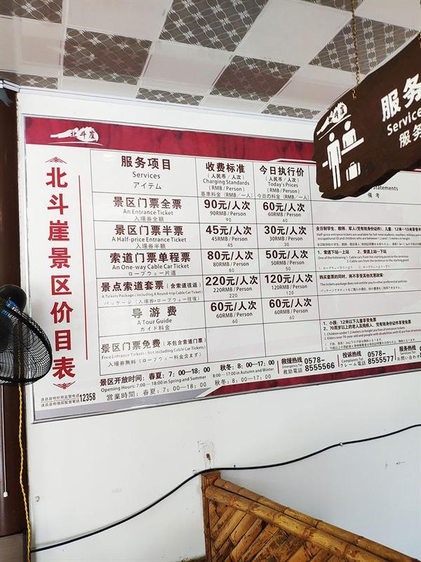 景点门票的价格适中,和江西的三清山比起来是稍微便宜。学生证很重要,可以半价。省时间的人可以选择坐缆车上去,沿途的风景美,山上的风景更好看。山上的景点非常的多,要是走的慢一点得要走一天,景点还提供导游服务,要是想玩的更仔细,可以购买,价格不贵,60块钱可以跟上一天。