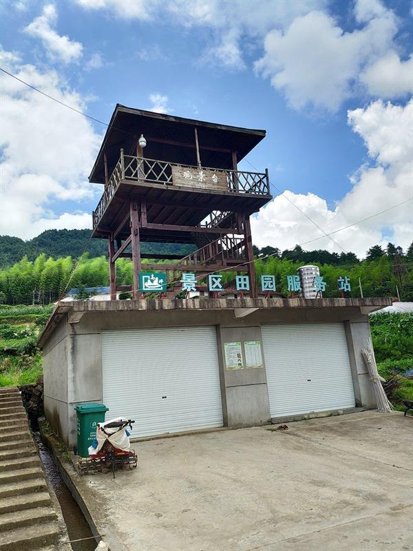 走过桃花源的过道,可以看到一个观景台,观景台已经有些时日,走在木梯上发出咯吱咯吱的声响,站在观景台上,视野非常的广阔,我可以环顾四周,把景色尽收眼底。俯瞰村子,和山水共色,如此的平静安逸,这里真宛如世外桃源一般,好一个桃花源。