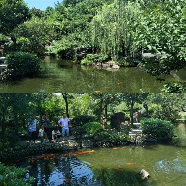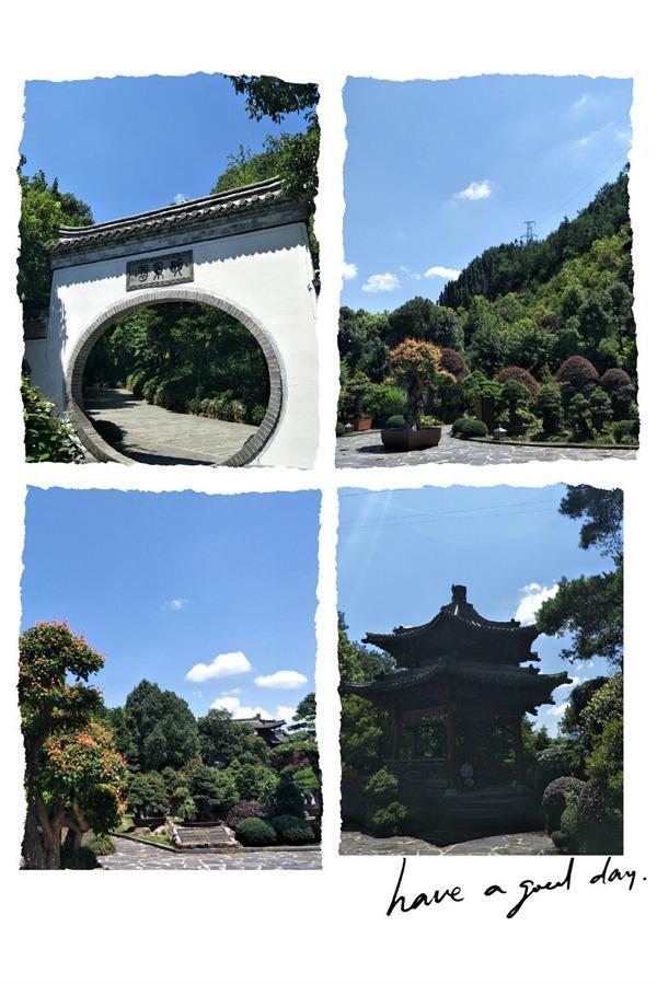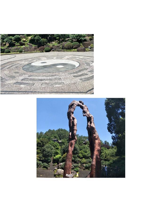 欣赏完八卦图及福门祥光后向右转,漫步在石阶上,一缕缕金黄色的阳光从密密层层的枝叶间投射下来,地上印满了大大小小的粼粼光斑,美丽极了。园内每个景点都有指示牌,还有保安和服务人员的温馨提示,所以根本不用担心迷路。