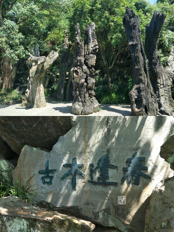 从青梅园出来后又可看到一个雕塑群,称为百木同春,充满悲壮色彩,是浙江省首批生态环境教育示范基地,陈列有千年枯树名木和阴沉木二百余件,是远古的历史缩影,经过艺术创作,以艺术作品独特的感染力,成为钱江源头环保的一面鲜明旗帜。
