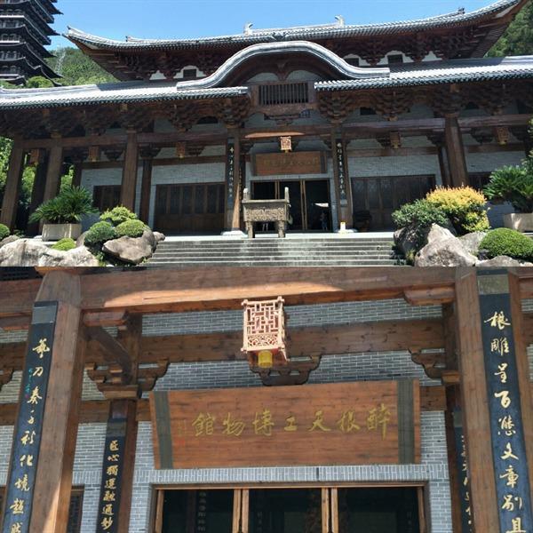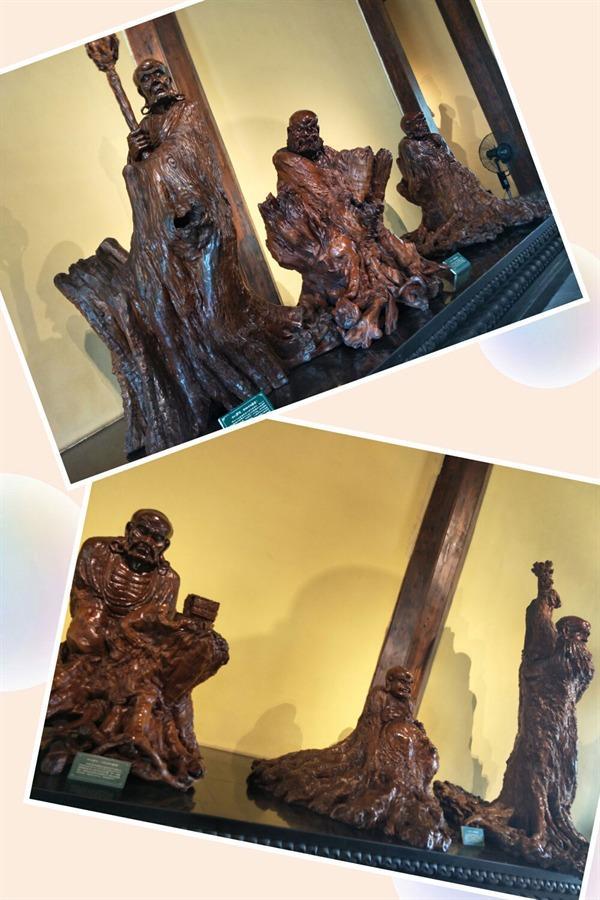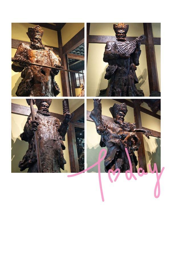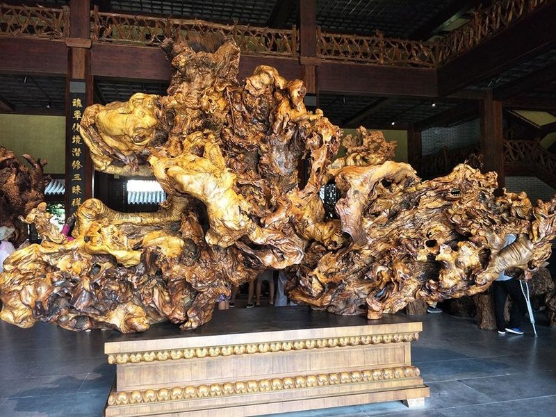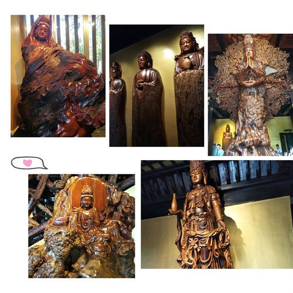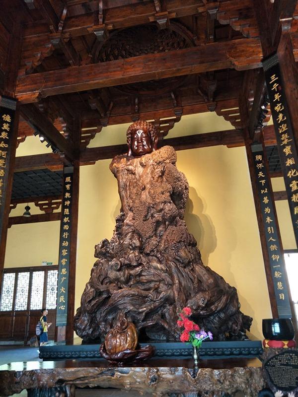 刚进博物馆首先引入眼帘的就是灵山护法,它以千年香樟木根为桩,将各种法器神兽雕刻得十分逼真,充满天趣美,是根雕艺术与佛教文化的完美结合。