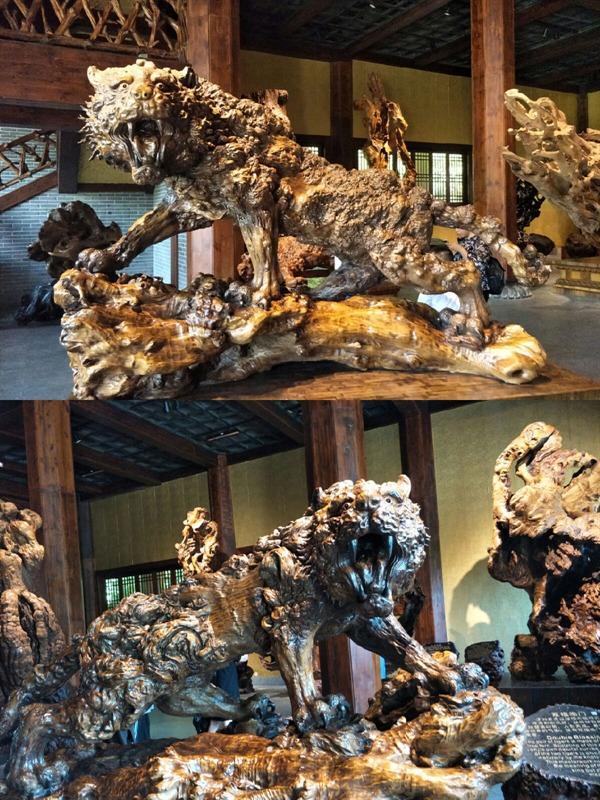 踏出博物馆后将看到集趣斋,里面陈列的是徐谷青各时期根艺代表作,以及他的弟子们的获奖作品,这些作品风格独特、选材奇绝、创作精巧,渗透着强大的生命力,具有回归自然的天趣美和强烈的历史使命感。