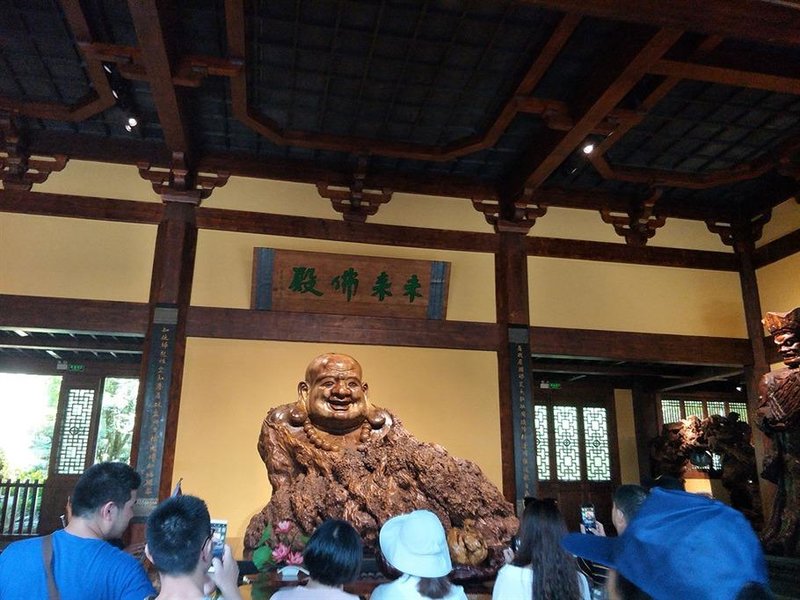 首先进入的是未来佛殿,而里面最具代表性的就是未来佛。未来佛是用黄金樟的树根创作而成的,重达16吨,弥勒形象喜心,坐姿洒脱自然,预示着无限的慧心与善果。