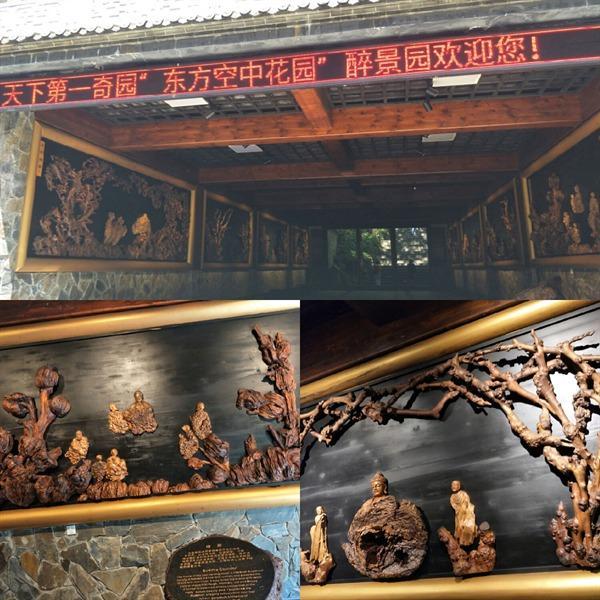 再踏上石阶,向左直上就能看到有着天下第一奇园“东方空中花园”美称的醉景园。醉景园地处旅游区山麓,是一座宜游、宜赏的园林,承载着徐谷青大师对生活理想的一种追求,这种追求以中华民族特有的隐喻和象征手法被附加在园林的各种饰物上。在有限的空间里,营造出诗境一般的山水画面,让人身在其中,感受大自然的清新,唤起人们心中自由的想象。