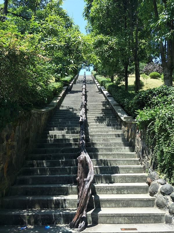 走出宝塔之后就可以登上返程之路啦,此时自己所处的地势有一些高,台阶的坡度也比较陡,所以在欣赏美景的同时要十分注意脚下的路。扶着扶梯顺势而下是个不错的选择。