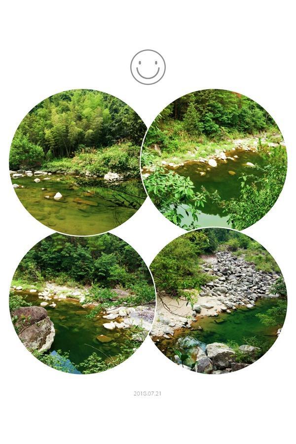 溪流穿梭在峡谷里,缓缓的流淌着,没有湍急。溪水时而在开阔处积起一片开阔的水潭,水很静没有一丝涟漪,碧绿的潭水倒映着两岸的山色。潭水就像是大自然的复印纸,就那样轻松的将那远山、那绿树、那蓝天,就这般轻易的复制在一个平面上了。