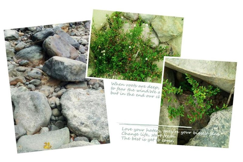 看那借滩石茁壮成长的河滩小灌木,已经开出了可爱的球状小花。它们更像是滩石庇护下调皮的孩子,一个个的在滩石堆里玩着捉迷藏的小游戏。看着这些情景,心境瞬间一片明朗开来。不由感叹:风花雪月本闲,而劳优者自冗。