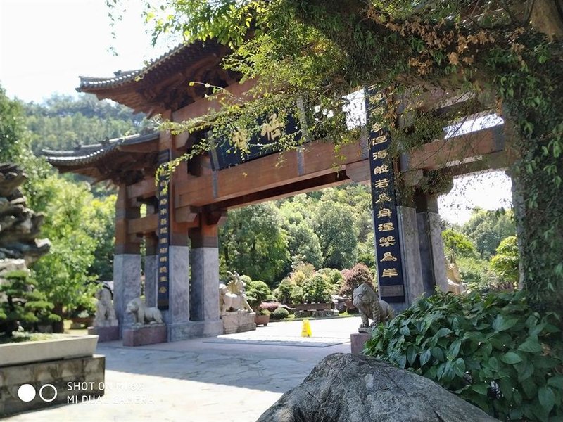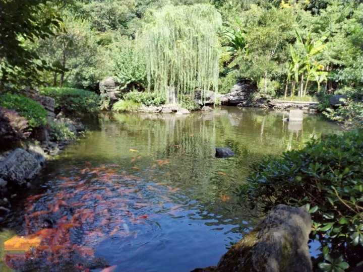 再向前走便来到了云湖禅心,清澈的湖水倒映着天空的蓝天白云,水中的金鱼成群结队在云中穿梭嬉戏。通过一潭平静的湖水将天空与大地巧妙地联系在了一起。如果说宋代大诗人楼钥的一句“水真绿净不可睡,鱼若空行无所依。”使湖水的清澈见底之景跃然纸上,那么云湖禅心的景致便能使天地万物充斥于人心,使人禅意四起。