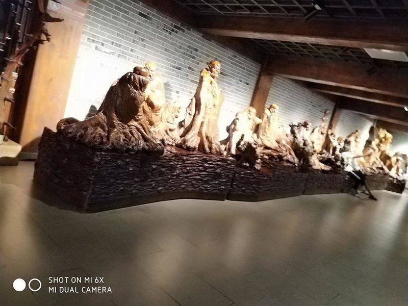 再往深处便是云龙开卧以及集趣斋等几处景区,展示了各式各样的根雕,琳琅满目,应接不暇,令人大饱眼福,而其中的点点精妙之处是一个外行人难以言喻的。只是有一点,这里的根雕,无论你是拿着放大镜仔细观摩其中纹理还是目光粗略带过一眼,都有一种安宁与平静的感觉。在这样一个小小天地里,世界突然安静了,你在里面,可以看到自己,和自己对话。