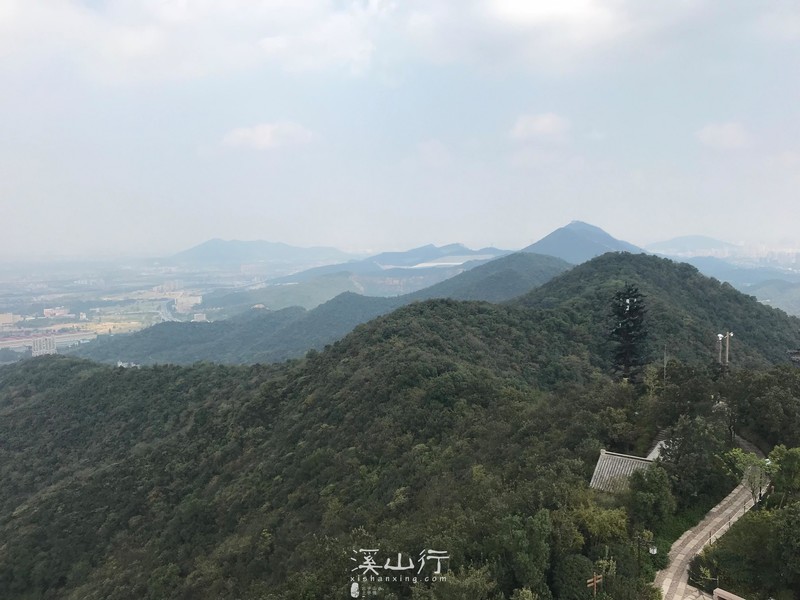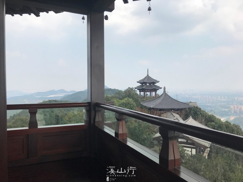 望宸阁的开放给半山景区增色不少,来的人更多了,景区开放了观光车,很多小朋友在大人的带领下排队等候乘车。勇敢的小朋友跟着大人徒步登山,走在我前面的小女孩约70公分高,手里拿着一根树干当做手杖用,树干比她的人还高,她的奶奶跟着后面叫,慢点!慢点!小女孩不理不睬手挥动树干小跑着前进,树干几次碰擦额头全然不顾,奋勇向前,我紧赶慢赶跟在她的后面,感觉并不轻松。她奶奶说,小女孩年仅3岁。和小女孩同时登顶,我已经满头大汗,小女孩的额头上也沁出细细汗珠,灿烂的笑脸非常开心。
