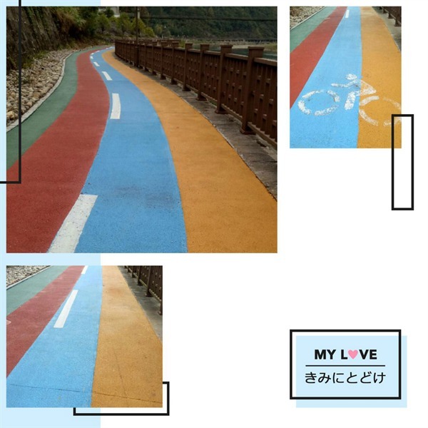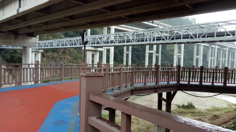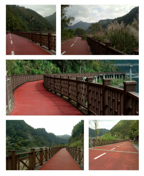 绿道的色彩不同路段是不同的,有时候是彩色的,自行车就像骑在彩虹上一般,有时候又是通体红色和碧绿的河水相互映衬,很是好看。