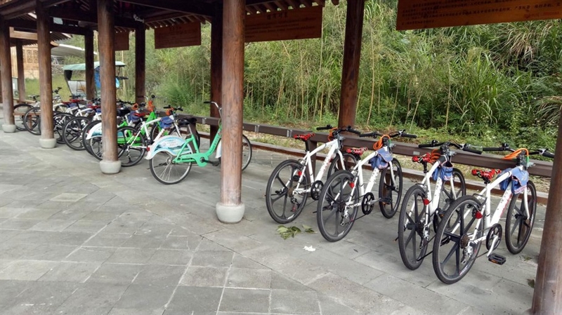绿道每过一段路程便有一个驿站可以休息,还有厕所。而溪口驿站就是绿道的起始驿站,而且也只有这个驿站有自行车租赁。这里的自行车有山地自行车也有两人、四人的观光自行车。还等什么,赶紧骑上自行车进行一场寻秋的旅行吧!