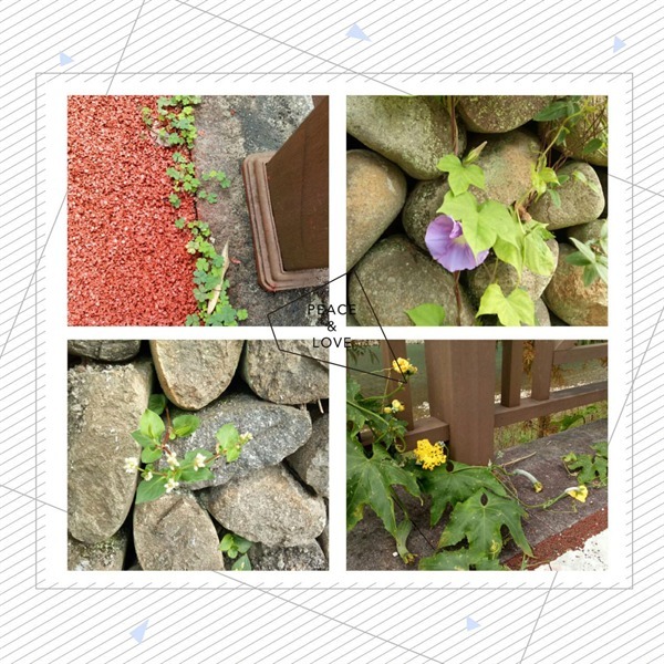 还有看见被称作朝颜牵牛花,和已经很是萧条的秋丝瓜。它们像是被这个秋天遗弃了一般,寂寞的散落在角落,无人问津。而赤红色的塑胶道路边上,也悄悄钻出了细碎的三叶草,为绿道镶上了花边。