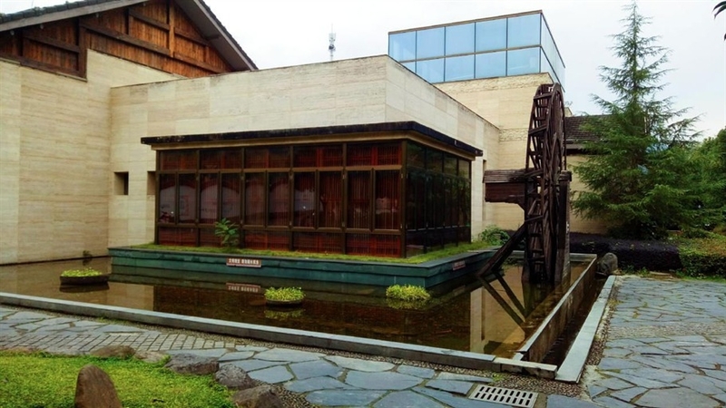 博物馆外也有一个跟凤凰古镇相类似的水车,这水车大概真的是他们的民族特色了。水车下的锦鲤还很小,但是异常灵活,人一靠近,它们早就溜的远远的了,绝对不向一般景区的锦鲤那样,人一靠近就向人飞扑过来。